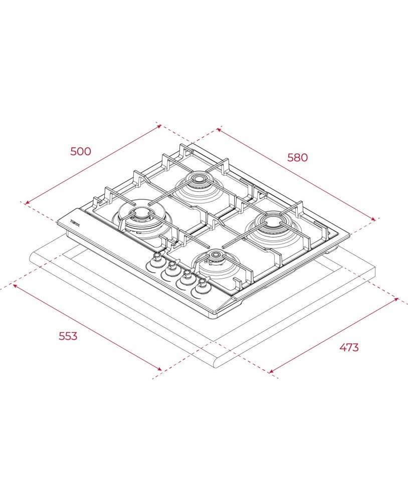 • Plită pe gaz, 60 cm