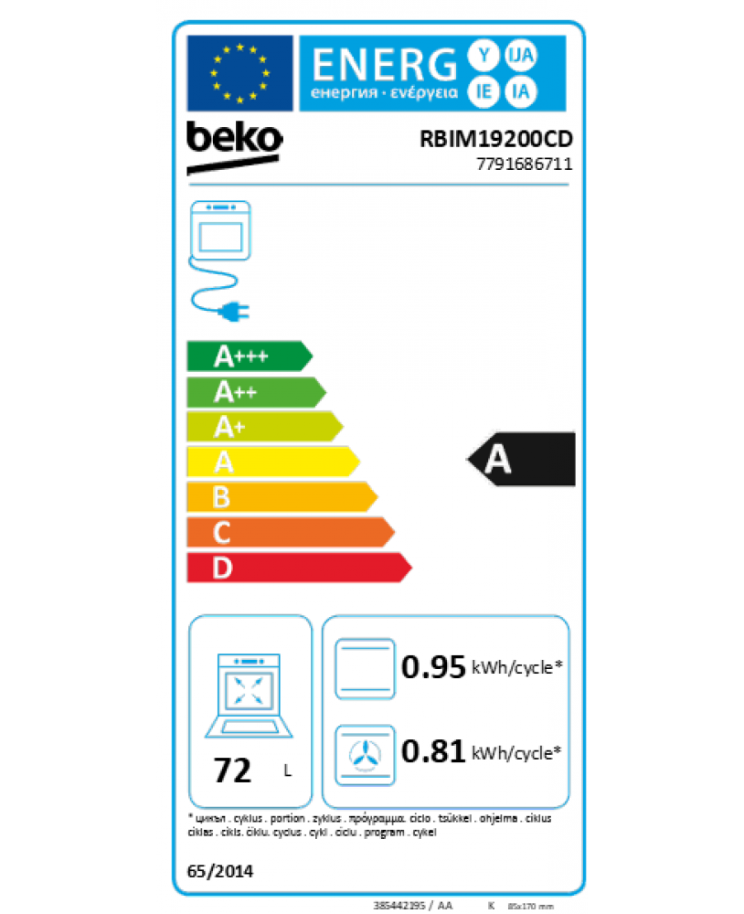 Consum de energie referitor la coacere normala (kWh) | 0.95 |