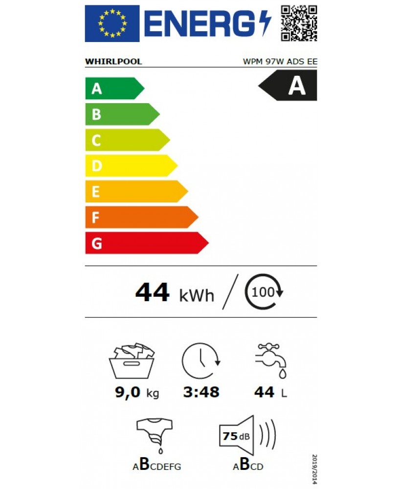 Eficiență energetică de neegalat. Această maşină de spălat rufe Whirlpool permite economii maxime de energie datorită clasei de energie A.